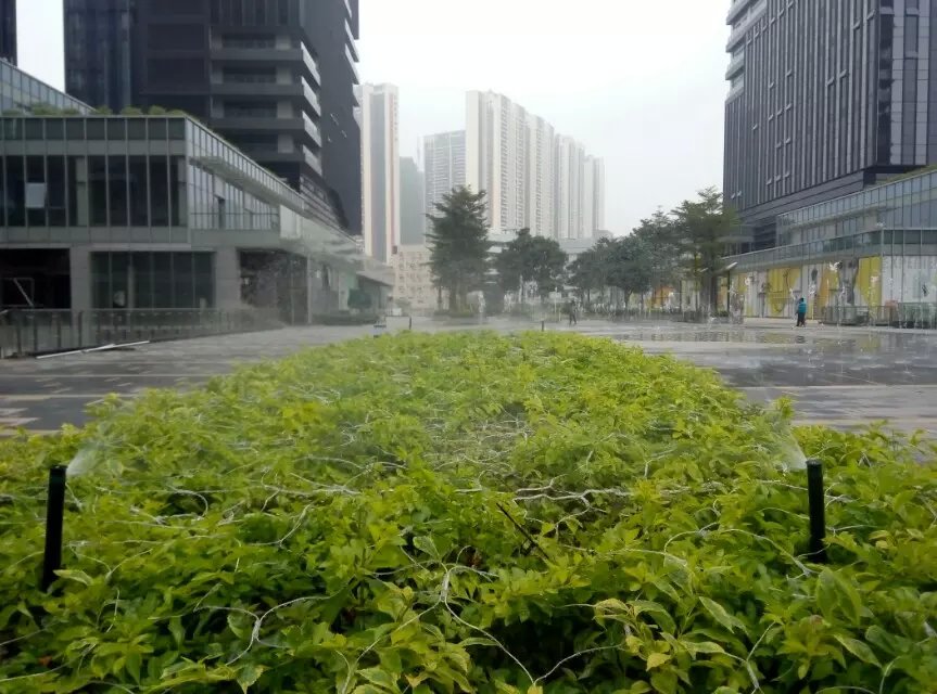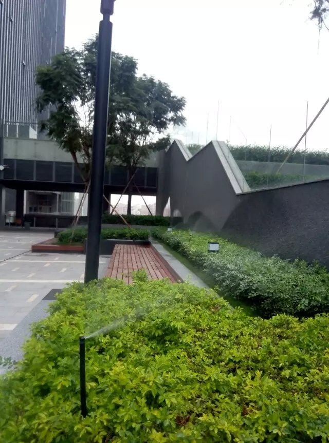 下图为华为在天安云谷的办公场所,其楼前草坪及楼层平台绿化灌溉均采用了亨特灌溉系统。