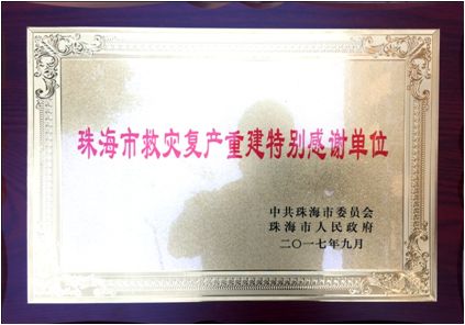 9月,中共珠海市委市人民政府授予绿友集团“珠海市救灾重建特别感谢单位”荣誉称号。