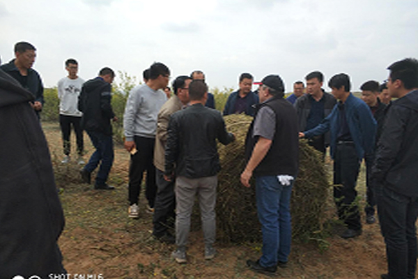 4月24日,绿友集团引进的中国首台加拿大安德森硬杆打捆机,前往宁夏吴忠市盐池县、红寺堡区等地做柠条平茬收割演示。