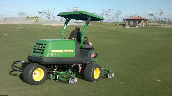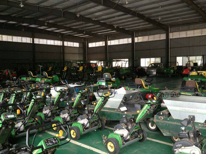 为打造顶级锦标赛事球场,从设计建造至今,览海国际高尔夫俱乐部配备了绿友提供的草坪养护设备,一应俱全。高端上档次的配置,为日后草坪的养护提供了坚强的保障,其中美国迪尔公司的8000E混合动力坐骑式五联球道剪草机就成了其中的一大“功臣”。18英寸QA5刀组,兼备先进的油电混合技术,起早摸黑,征服了连绵起伏的球道,赢得了俱乐部草坪总监及其团队的一致肯定。驰骋美巡,盼其再续辉煌征程。