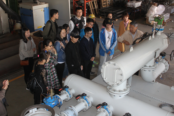 随后,李总与师生们一起,观看了草坪绿地灌溉喷洒、造雾系统设备的现场演示,参观了产品展厅,了解了泵站的原理性能和生产工序。绿友集团派专人为大家作详细地讲解和介绍。