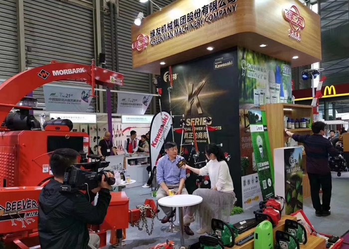 绿友展位园林产品集体亮相,小到爱丽斯园艺工具,大到木霸克粉碎机,还有植保养护产品和冷雾设备等,吸引了众多观众。这些观众大都是从事花卉基地养护、草坪种植、园林绿化等行业的专业人士。他们三五成群地围绕着自己感兴趣的产品,询问产品的性能、使用方法及价格等,工作人员予以详细的讲解。