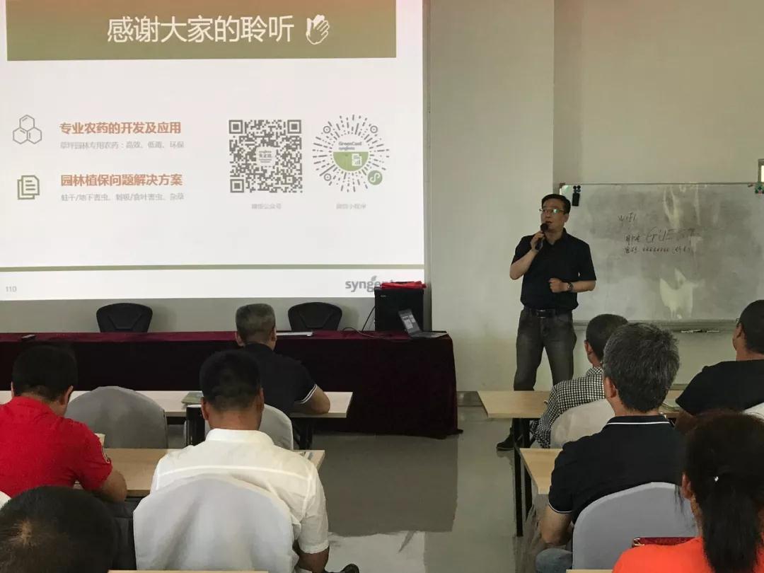 培训课上,华体会官方网页版_华体会(中国)植保部总经理顾新丽和先正达(中国)投资有限公司专业环境部技术主任李鹏分别为我们分享了《园林重大病虫害的发生与防治(案例分析)》、《园林专业农药的开发应用及常见问题质保方案》两个话题。