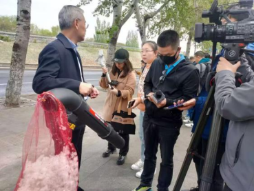 华体会官方网页版_华体会(中国)李敏总裁在北京市园林局、北京市园林科学院等单位举办的杨柳飞絮治理新闻发布会上接受央视、北京电视台、环境报、科技日报、新京报等多家媒体采访,介绍绿友研发的杨柳飞絮吸絮机,受到广泛关注与好评。