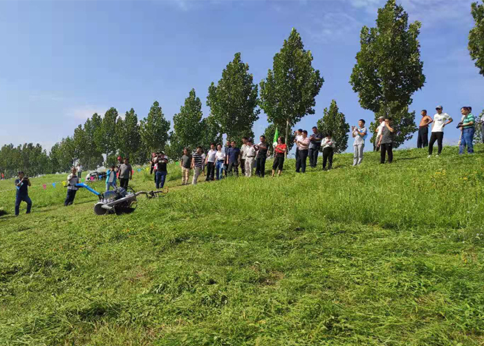 今年夏天,绿友集团相关人员和德国Brielmaier公司两名工程师一行来到山东东营市,在酷日和暴雨的黄河大堤上检验这台多功能剪草机的使用效果。