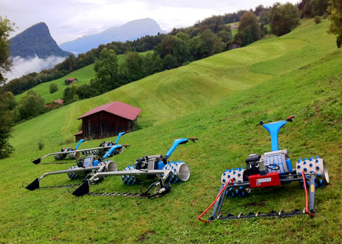 黄河护坡的角度可达到30多度,人在上面走都很困难,每年需要修剪草坪防洪防火,由于面积太大,会消耗大量的人力物力才能完成工作,我司从德国引进的斜坡专用的割草机,最适合完成此类工作,经过测算,一台剪草机相当于160个人工和160台割灌机,节省了大量人力物力,另外此设备还可配置不同宽度的刀片,最宽可达6m,也可配备无线遥控,远程操作机器。