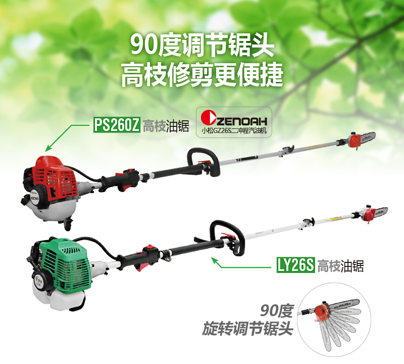 美神高枝油锯,90度可旋转刀头,奥里根导板和链条;整机长度3米,适用于高空树枝的修伐。