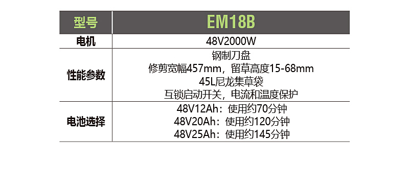 18寸电动草坪修剪机,实现了草坪修剪的电动化,具有噪音低,无污染, 操作简单,适用于社区、学校、单位等场所使用。