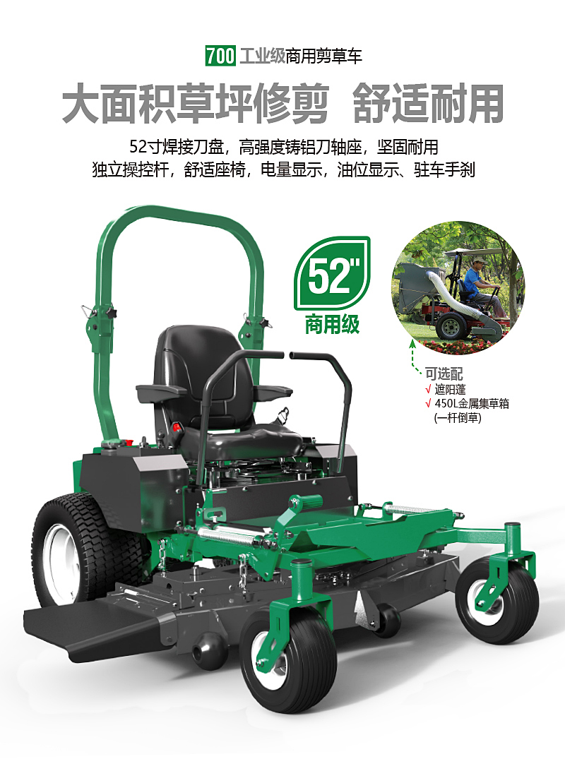 52 寸 零转弯草坪车 是一款商用型草坪车,适用于大面积草坪的养护作业。