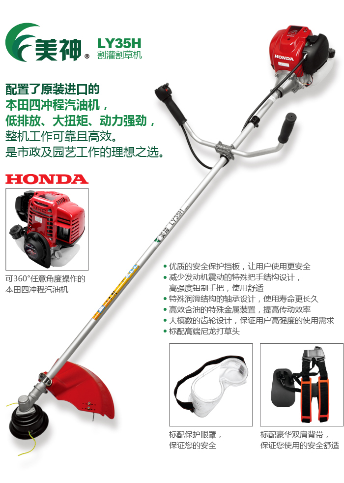 美神四冲程割灌割草机搭载了本田四冲程GX35强劲动力