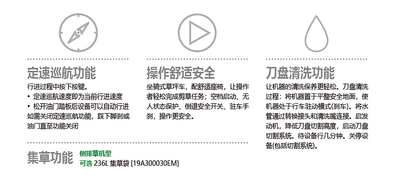 5. 标配侧排草,可选236L双袋集草装置