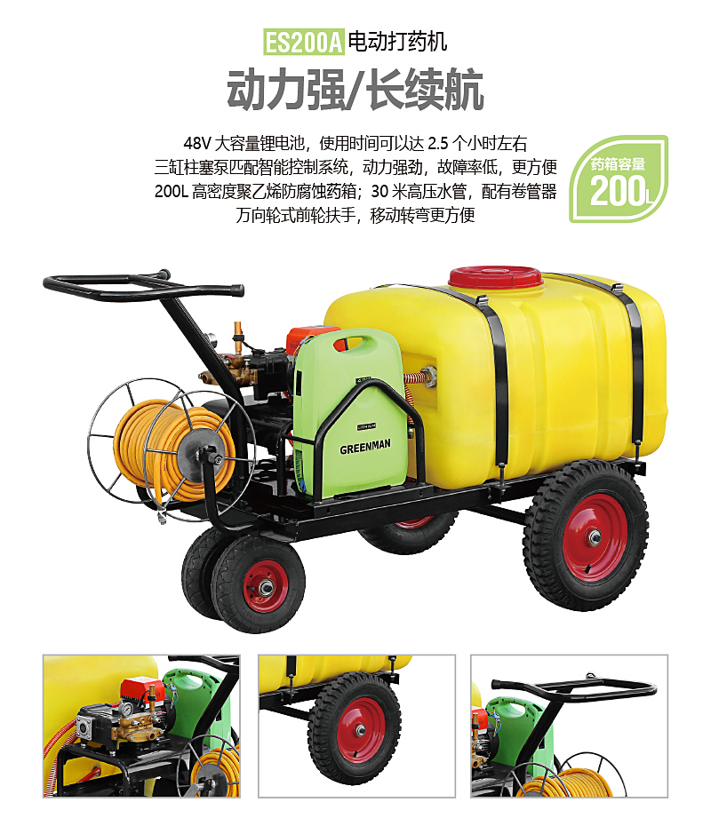新型电动打药机,具有节能,环保,低噪音的特点,应用于农业、果业、城市园林绿化和室内消杀等。