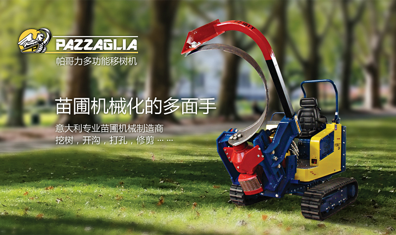 来自意大利的帕哥力多功能移树机,是苗圃机械化的多面手,除了能够挖树之外,还能够钻孔,开沟